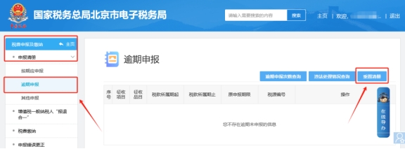 (1)請您選擇【我要查詢】—【一戶式查詢】—【申報信息查詢】—【逾期未申報信息查詢】調(diào)整查詢條件查看;