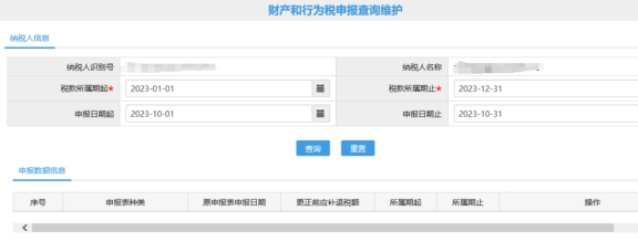 三、財(cái)產(chǎn)和行為稅申報(bào)查詢維護(hù)。