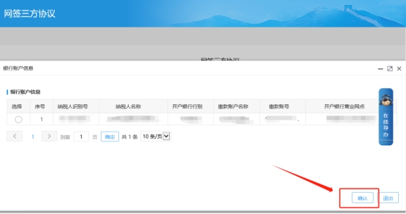 四、在彈出的網(wǎng)頁中選擇銀行賬戶信息點(diǎn)擊確認(rèn),進(jìn)入填表頁面,選擇對應(yīng)的清算銀行號(hào),會(huì)自動(dòng)帶出開戶銀行行號(hào),確認(rèn)信息無誤后可以點(diǎn)擊保存填表信息;點(diǎn)擊下一步提交表單,受理完成后可以在事項(xiàng)進(jìn)度管理查看受理系統(tǒng)回執(zhí)單。納稅人辦理完成之后,若所選銀行為直簽銀行,可以在網(wǎng)簽三方協(xié)議頁面,選擇對應(yīng)的信息,直接點(diǎn)擊驗(yàn)證。