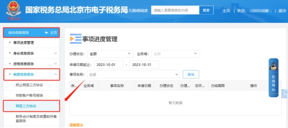 二、綜合信息報(bào)告—制度信息報(bào)告—網(wǎng)簽三方協(xié)議。