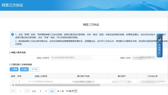 答:您好,可通過電子稅務(wù)局首頁【我要辦稅】—【綜合信息報(bào)告】—【制度信息報(bào)告】—【網(wǎng)簽三方協(xié)議】點(diǎn)擊新增按鈕,在彈出的網(wǎng)頁中選擇銀行賬戶信息點(diǎn)擊確認(rèn),進(jìn)入填表頁面,選擇對應(yīng)的清算銀行號(hào),會(huì)自動(dòng)帶出開戶銀行行號(hào),確認(rèn)信息無誤后可以點(diǎn)擊保存填表信息;點(diǎn)擊下一步提交表單,受理完成后可以在事項(xiàng)進(jìn)度管理查看受理系統(tǒng)回執(zhí)單。納稅人辦理完成之后,若所選銀行為直簽銀行,可以在網(wǎng)簽三方協(xié)議頁面,選擇對應(yīng)的信息,直接點(diǎn)擊驗(yàn)證;若納稅人所選銀行不是直簽銀行,納稅人需要在【我要查詢】—【辦稅進(jìn)度及結(jié)果信息查詢】—【涉稅文書查簽】選擇對應(yīng)的事項(xiàng)名稱,下載打印之后去所選銀行辦理簽約業(yè)務(wù),辦理完成之后,再登錄電子稅務(wù)局【我要辦稅】—【綜合信息報(bào)告】—【制度信息報(bào)告】—【網(wǎng)簽三方協(xié)議】選擇要驗(yàn)證的信息點(diǎn)擊驗(yàn)證,顯示驗(yàn)證通過即可。