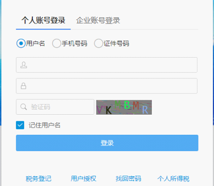 4.? 納稅人選擇個(gè)人賬號(hào)登錄-用戶名登錄方式,輸入用戶名密碼,點(diǎn)擊“登錄”按鈕,進(jìn)入實(shí)名申請(qǐng)頁(yè)面。