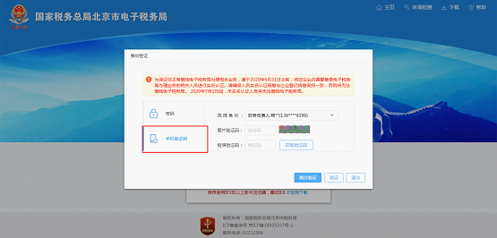 2.? 選擇手機(jī)驗(yàn)證碼登錄,輸入圖片驗(yàn)證碼,點(diǎn)擊“獲取驗(yàn)證碼”按鈕,短信平臺(tái)會(huì)向該人員實(shí)名認(rèn)證時(shí)登記的手機(jī)號(hào)發(fā)送驗(yàn)證碼信息;輸入短信驗(yàn)證碼,點(diǎn)擊“驗(yàn)證”按鈕,即可進(jìn)入電子稅務(wù)局首頁(yè)界面;