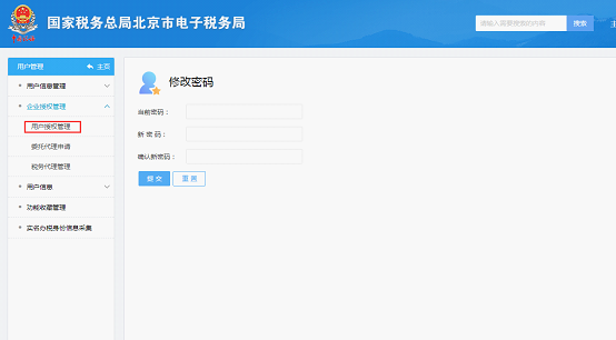 3)? 企業(yè)納稅人審核,企業(yè)登錄電子稅務(wù)局,在我的信息----用戶管理里面,點(diǎn)擊打開企業(yè)授權(quán)管理,選擇用戶授權(quán)管理,點(diǎn)擊打開;