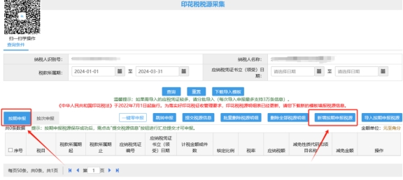 四、進(jìn)入印花稅稅源采集界面,先點(diǎn)擊【按期申報(bào)】,再點(diǎn)擊右上角【新增按期申報(bào)稅源】。