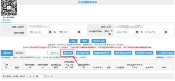 其他信息根據(jù)系統(tǒng)提示以及納稅人實(shí)際情況選擇后,勾選“印花稅”,點(diǎn)擊【申報(bào)】,系統(tǒng)自動(dòng)帶出申報(bào)信息,核對(duì)無(wú)誤后再次點(diǎn)擊【申報(bào)】即可,如果信息有誤返回到稅源采集界面去更正稅源信息,然后再申報(bào)即可。