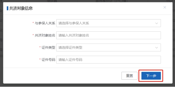第五步:輸入【共濟(jì)對(duì)象信息】,點(diǎn)擊【下一步】按鈕。