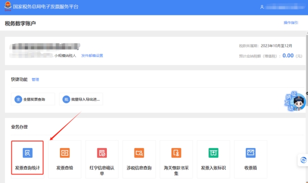 二、稅務(wù)數(shù)字賬戶—發(fā)票查詢統(tǒng)計(jì)。